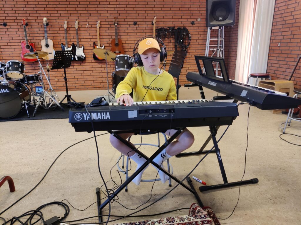 Første dag er gået med godt humør og en masse øvning. Der er blevet lyttet til hinanden, afprøvet forskellige idéer og taget beslutninger om, hvad der skal spilles.